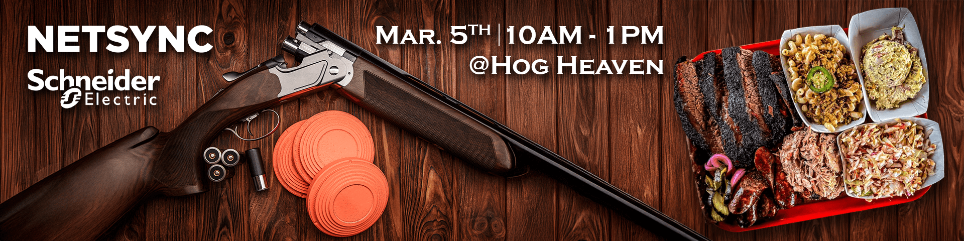 Join Netsync and Schneider Electric for a private clay shooting event at Hog Heaven in Dripping Springs, TX. You’ll start the morning with a brief overview of clay shooting basics, then head out on the range for guided shooting across five stations with Netsync and Schneider Electric team members.